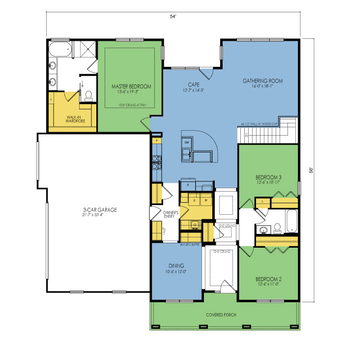 A part of our dream series, the tamarack floor plan features 3 bedrooms and 1.5 bathrooms with a foot print of 44x30 feet and 1342 total square feet of living space.