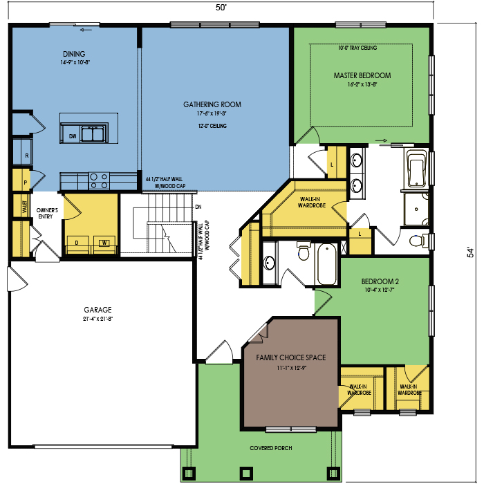A part of our dream series, the tamarack floor plan features 3 bedrooms and 1.5 bathrooms with a foot print of 44x30 feet and 1342 total square feet of living space.