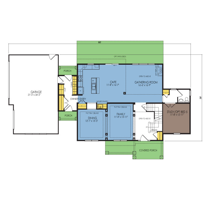 A part of our Designer Series, the Highland Woods floor plan features 4 bedrooms and 3.5 bathrooms with a foot print of 80x38 feet and 3019 total square feet of living space. Floor Plan #DT264