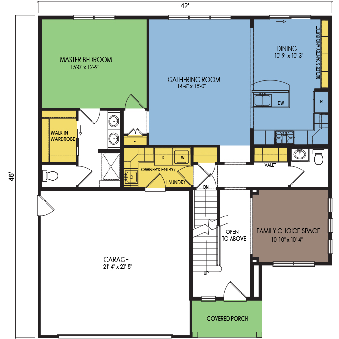 A part of our dream series, the tamarack floor plan features 3 bedrooms and 1.5 bathrooms with a foot print of 44x30 feet and 1342 total square feet of living space.