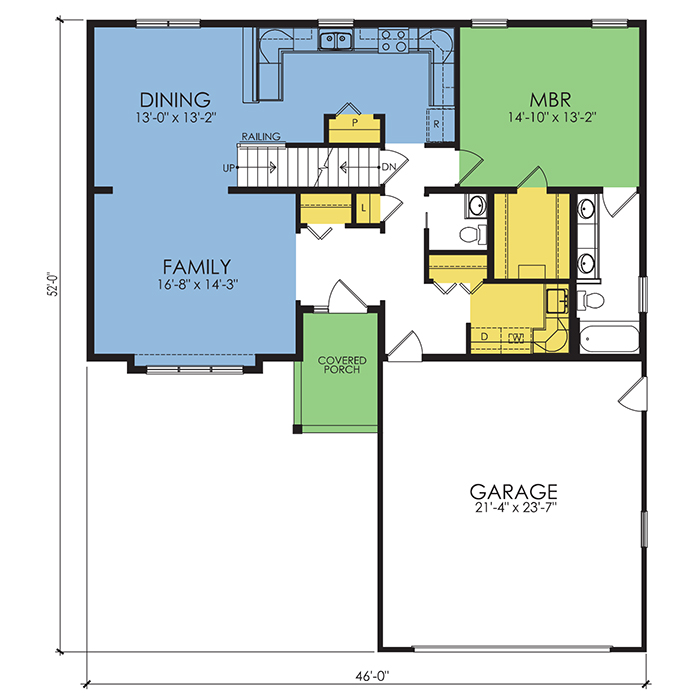 A part of our Wausau Originals, the Nevada floor plan features 3 bedrooms and 2.5 bathrooms with a foot print of 46x52 feet and 1928 total square feet of living space. Floor Plan #WO436