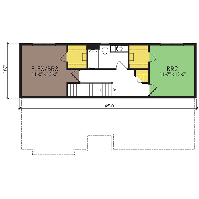 A part of our dream series, the tamarack floor plan features 3 bedrooms and 1.5 bathrooms with a foot print of 44x30 feet and 1342 total square feet of living space.
