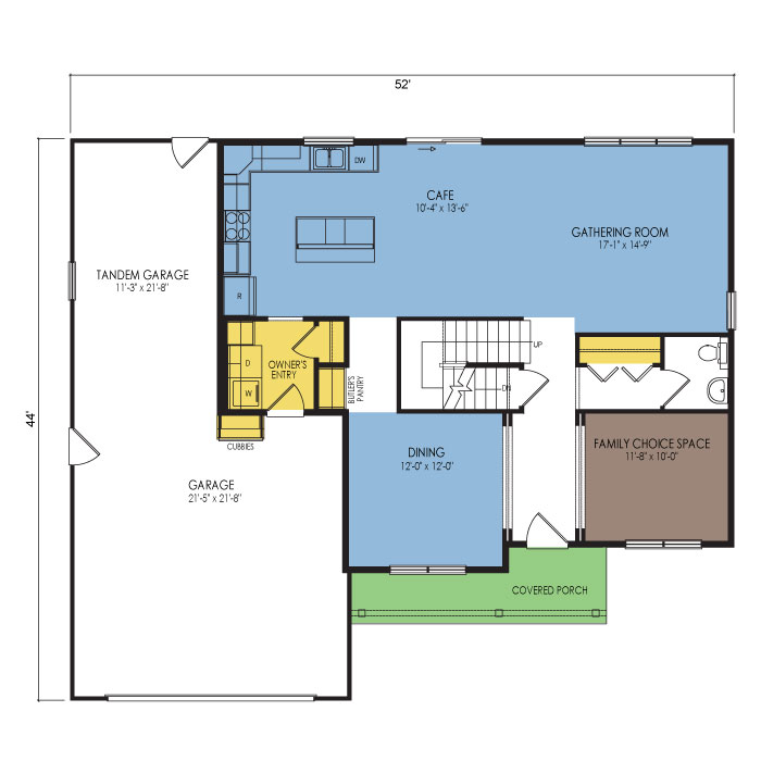 A part of our dream series, the tamarack floor plan features 3 bedrooms and 1.5 bathrooms with a foot print of 44x30 feet and 1342 total square feet of living space.