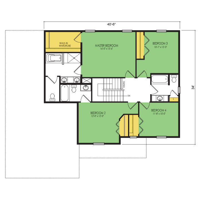 A part of our designer series, the pebble beach floor plan features 4 bedrooms and 3.5 bathrooms with a foot print of 52x44 feet and 2365 total square feet of living space. Floor Plan#DT227