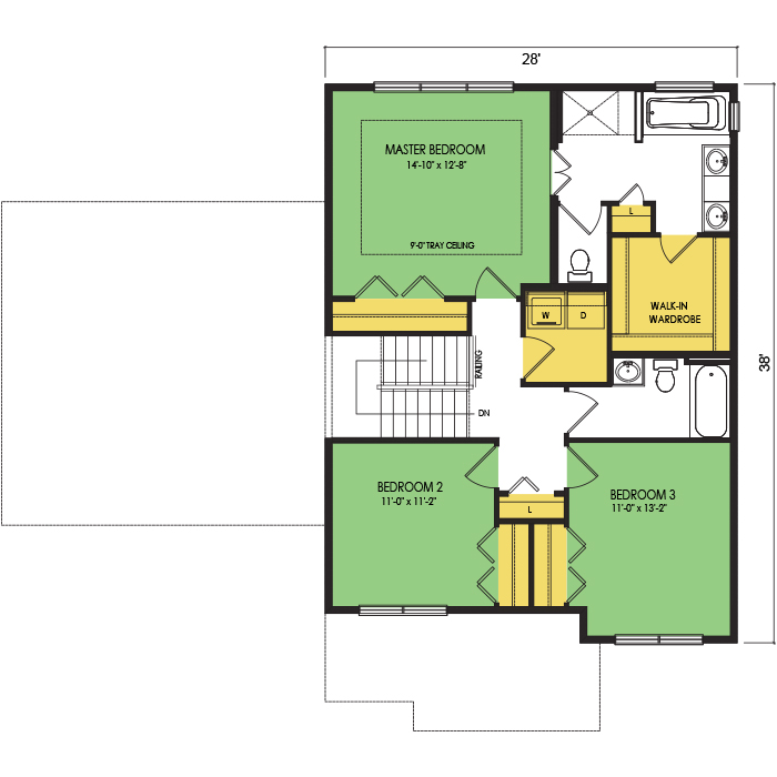 A part of our dream series, the tamarack floor plan features 3 bedrooms and 1.5 bathrooms with a foot print of 44x30 feet and 1342 total square feet of living space.